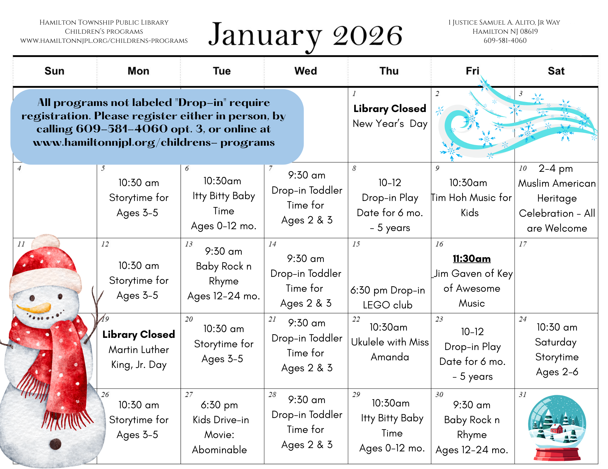 Printable January Children’s Program Calendar